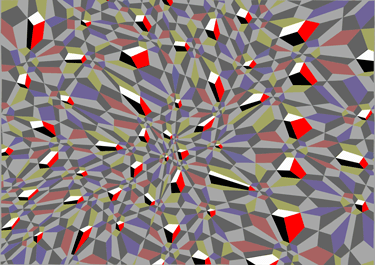 A field of all the cubes that are white on top, black on the left and red on the right. (In an interlocked "babyblock" pattern such as this, all the facets are shared by two cubes, so that each shape exists in two different spatial locations.)