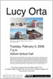 Designer and artist Lucy Orta invented “Refuge Wear,” “Body Architecture,” and “Nexus Architecture” (1992–2002). She was a founding member of the “Man and Humanity” Master in Industrial Design for the Design Academy Eindhoven (2002), and was invested as the first Rootstein Hopkins Chair at London College of Fashion, University of the Arts, London (2002–07). In 1993, Lucy Orta and her partner, Jorge Orta, founded their studio in central Paris. Lucy + Jorge Orta have exhibited their results of their collaborations in major contemporary art museums, including the Barbican Art Gallery, London; Modern Art Museum, Paris; Museum of Contemporary Art, Sydney; Boijmans Museum Van Beuningen, Rotterdam; as well as at the Venice, Havana, and Johannesburg Biennales. The lecture was sponsored by the Cafferio Family Trust, the Reed College art department, and the Pacific Northwest College of Art.