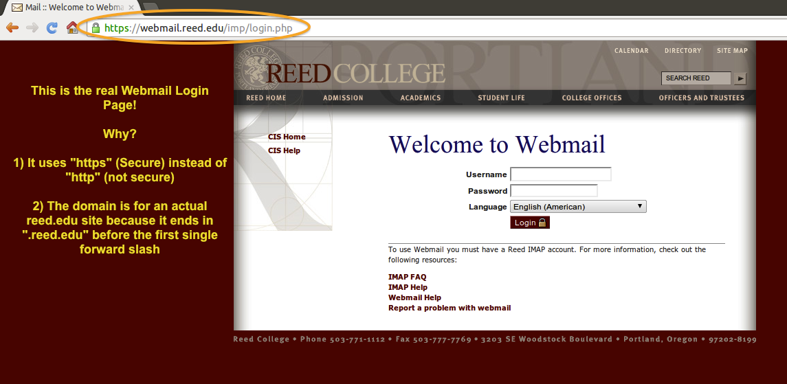 A new phishing email that is targeting the Reed Community and purports to be from "info@reed.edu". A similar message is also targeting other colleges and universities. DO NOT reply, click on any links, provide personal information, and open any attachments. Contact the CUS Help Desk with questions or concerns.