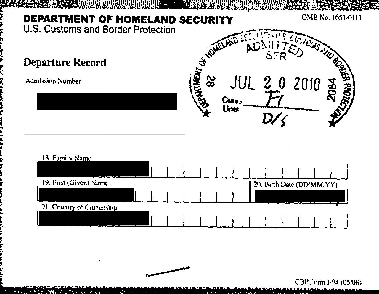 I-94 Departure Card