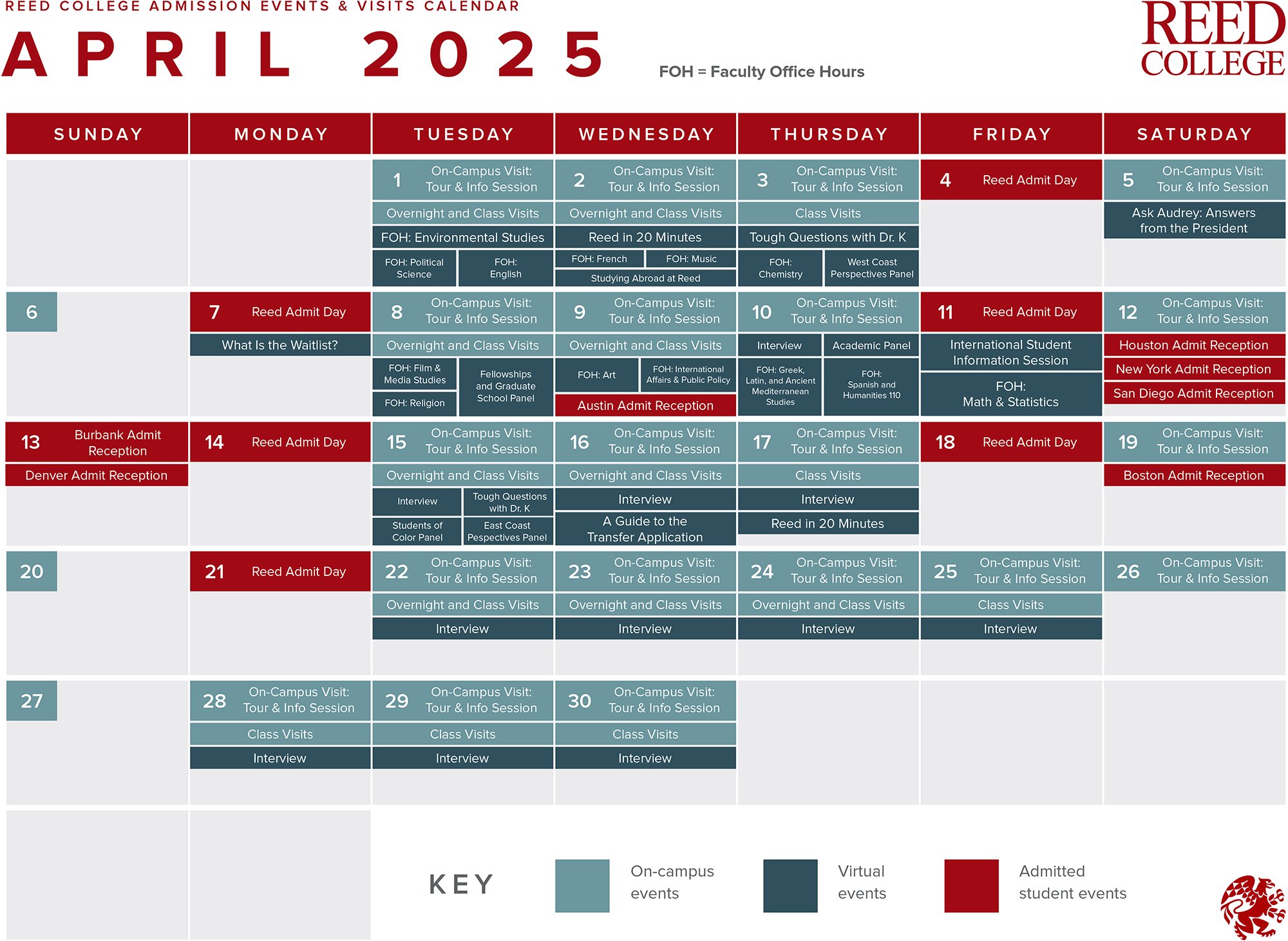 Experience the buzz of Reed—online, in person, or on demand. Join us year-round for campus events, virtual info sessions, college search workshops, and conversations with faculty, students, and campus leaders.