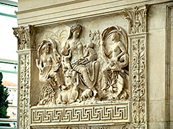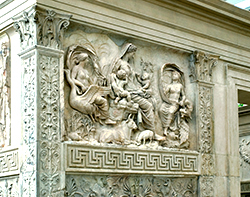 the most intensely studied and reinterpreted of any of the frontal relief panels on the Ara Pacis.