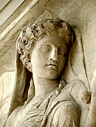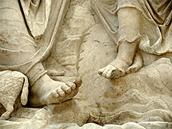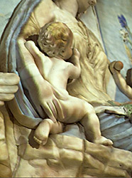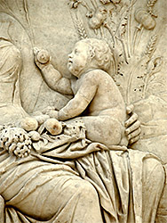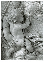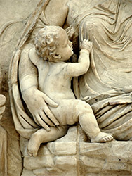 The smooth surface of the child's body and of Tellus's hand contrast with the worn surface of the unrestored marble.