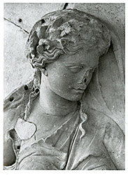 Head and bust of Tellus after small previous inserts (described in caption to photo at left) had been replaced.