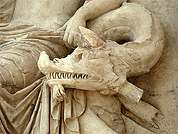 The front of the sea-snake's face is an early reconstruction. The distinction is made clear in its current presentation.