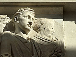 All except the 2 low-relief background heads were newly carved in the late 18th century. They are brilliantly carved but much more neo-classical than the Augustan originals.