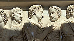 This processional frieze on the original north side of the Ara Pacis combines largely original Augustan carving of the clothed bodies with 18th century replacements and recarving of nearly all the heads.
