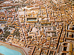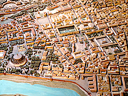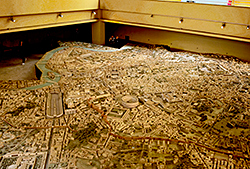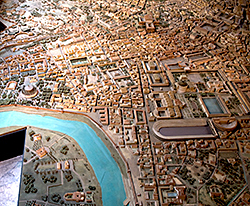 Looking northwest across the great model of Rome; the Campus Martius in the distance.