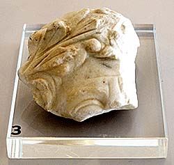 Of the hundreds of small carved fragments uncovered when excavating the Ara Pacis, scholars have gradually sorted out and catalogued over 300 pieces judged to be part of the Ara Pacis itself. The two fragments below are thought to be parts of the figurative reliefs, though It has not been possible to identify their original location. These 2 high quality fragments are on display in the lower level of the Museo dell'Aea Pacis.