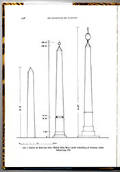 "Pl.1 Obelisk of the Sundial; left: Obelisk alone, middle: ancient set-up as a gnomon; right: set-up 1792".