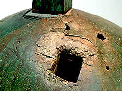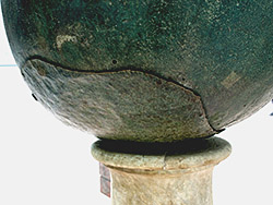 Detail of bronze globe in photos above, showing overlapping bronze sheets.