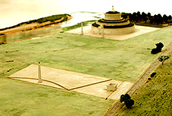 Model of Northern Campus Martius during the Augustan period. Looking northwest past the obelisk and Ara Pacis to the Mausoleum of Augustus. On display in the Museo dell'Ara Pacis. Model gift of Rotary Club Roma Sud, made by the Istituto Statale d'Arte Roma 2.