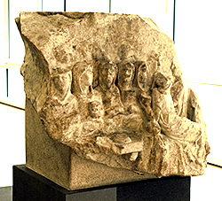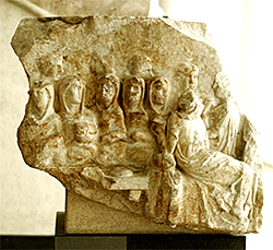 Marble fragment with seated banqueting Vestal Virgins and other figures.