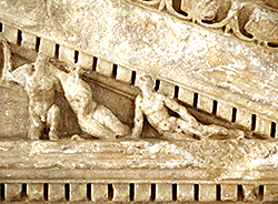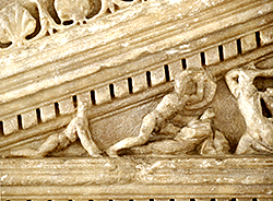 Left side of pediment with battle scene, from marble fragment in photos above.
