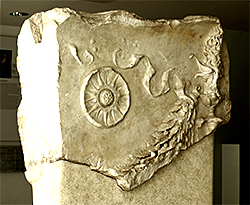 Marble fragment with patera and festoon, found in 1835 near Via del Corso, Rome.