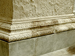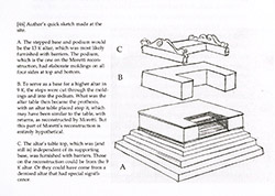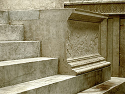 Podium – the large u-shaped structure resting on the plinth and below the hypothetical structure sometimes called the "prothesis". 4 steps are set into the front of the podium, leading to it's top, the level on which priests would stand.