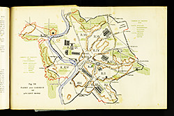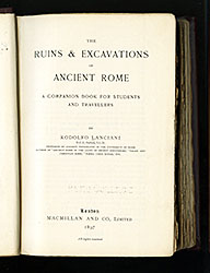 This 1897 book by Rodolfo Lanciani, the leading authority of the time on the archaeology of ancient Rome, was a major advance over all previous guidebooks to the ancient city and remains an impressive achievement even today. By 1878 Lanciani had been placed in charge of all excavations in Rome and had been appointed Professor of Roman Topography at the University of Rome. His scholarship in his book and elsewhere is noteable for it historical accuracy and detail. This book is not a translation but was written in clear English for the British publisher. Lanciani was fluent in English as well as Italian. These exemplary maps are based on up-to-date research, drawn by Lanciani especially for this publication. They include THE FIRST PUBLISHED MAP SHOWING THE LOCATION OF THE ARA PACIS (FIG. 173 BELOW). There are also 2 of the first published photographs of any portion of the Ara Pacis (figs. 469 and 470 below).