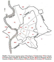 Rome and Environs: An Archaeological Guide, trans. James J. Clauss and Daniel P. Harmon, illustrations adapted by J. Anthony Clauss and Pierre A. Mackay; Berkeley: University of California Press, 2007, p.7. Reproduced with appreciation