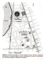 "Figure 77 Northern Campus Martius." Map showing location of 9 monuments.