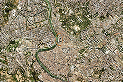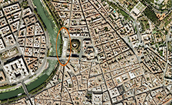 Aerial view of Rome with location of Ara Pacis and Piazza Augusto Imperatore indicated, 2009.