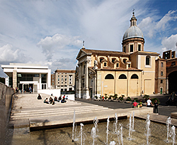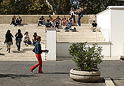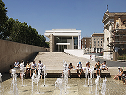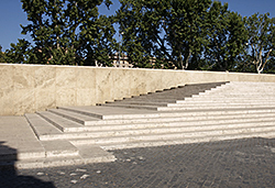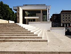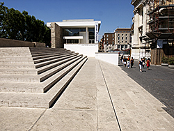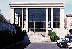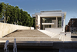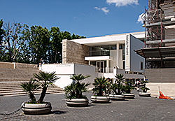 The expansive front stairs are perhaps the most lavish aspect of Meier's design and a sculptural achievement of considerable note. Spreading out from the large upper plane of the museum's entry level, they descend in two stages and two directions, providing subtly moving perspectives. On all levels, they provide something of a grandstand for school classes and other visitors.