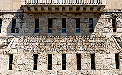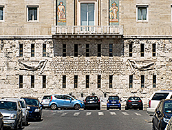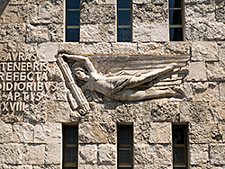 The relief sculptures and mosaic murals created for the facades of these buidings are representative examples of the most refined official art at the time. The Latin inscription below the mosaics, seen in the photos below, reads: