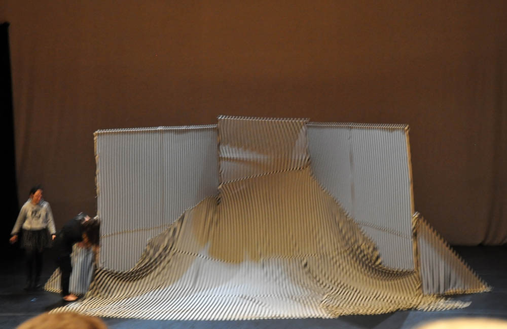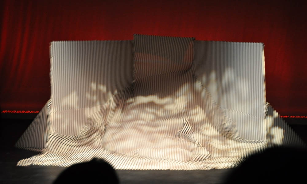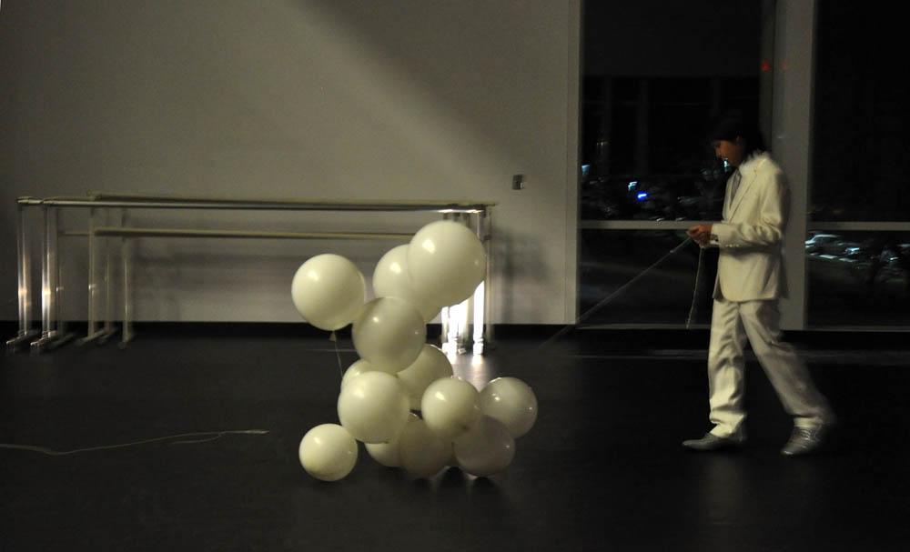 Consider types of spaces and what is performed in them, found spaces, a domestic space like the kitchen table, a bed room, a garden, a public spaces, a library or a coffee shop, a funeral parlor, a temple, a church a book shop, a grocery store, the street. The creation of the space can be done with clothing/costume, projection, steam, mirrors etc.