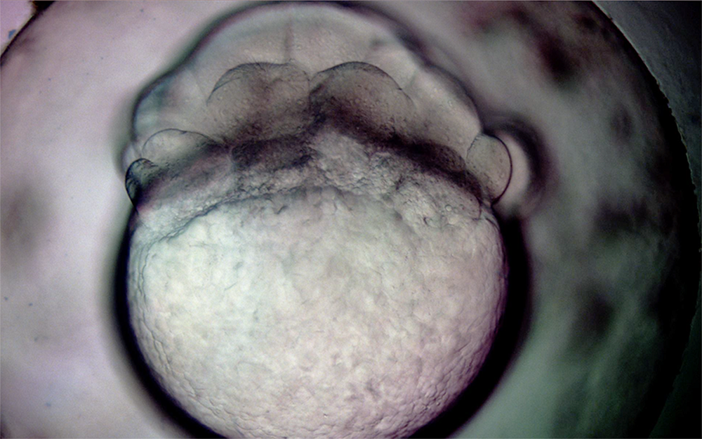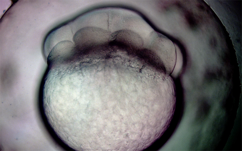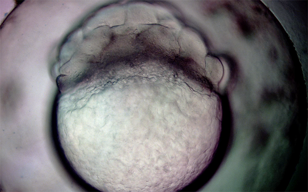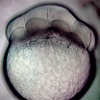 Zebra Fish Egg photographed with The Nikon Eclipse Ti-E inverted microscope for epi-fluorescent imaging and a digital camera for high resolution image acquisition of critical moments in the stages of embryonic development, 2- cell, 4 cell, 8-cell, 16-cell, 32-cell, 64-cell, 128-cell, morula, late blastula, early gastrula, mid-gastrula, late gastrula, blastopore closure of the Zebra fish egg.