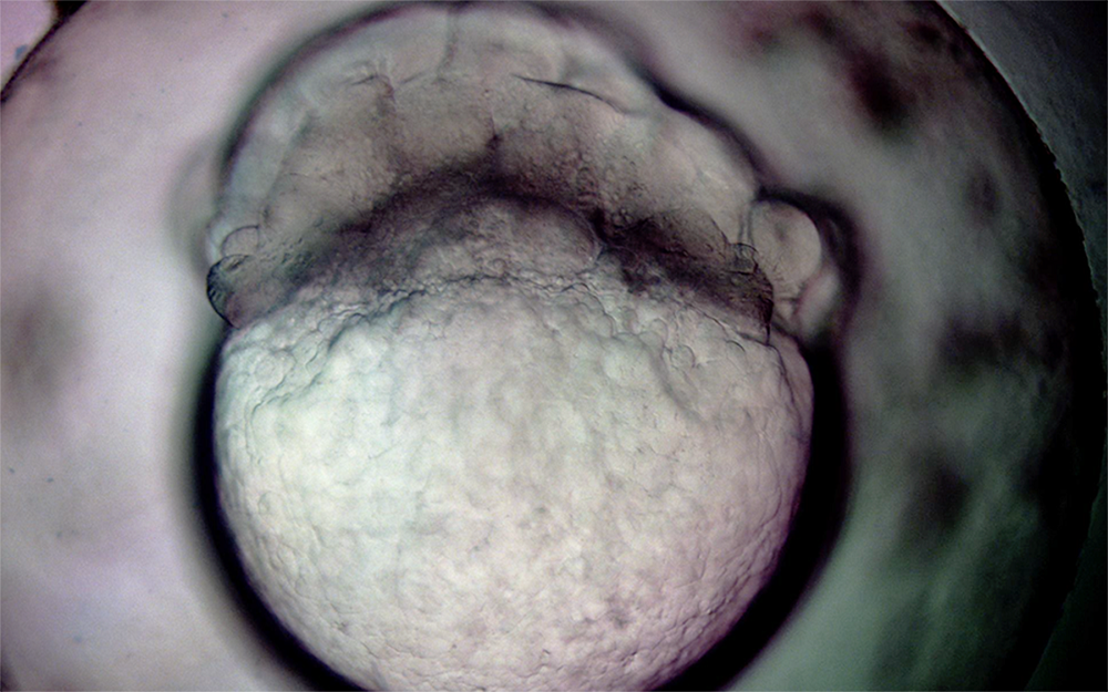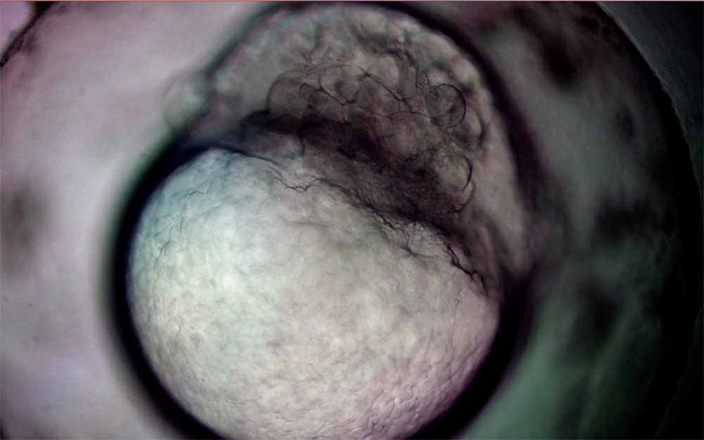 A final short film Gestation depicts egg gestation through to the blastocyst stage. The film was made in Professor Kara Chenery’s developmental biology lab at Reed College using The Nikon Eclipse Ti-E inverted microscope for epi-fluorescent imaging and a digital camera for high resolution image acquisition. The camera was programmed to record an image every five minutes over eight hours. Zebrafish embryos were used, as they are transparent, develop outside of the mother, and are amenable to genetic and embryological manipulations.