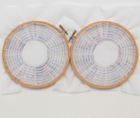 Printed Silk, Water Color, Embroidery hoops 12 x 18”