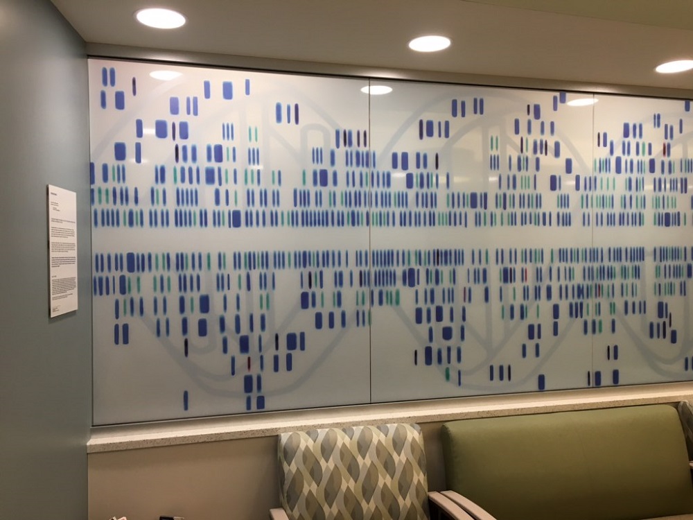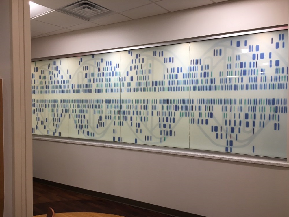 12’ long x 60” window with encased colored gel of Chromosome 2