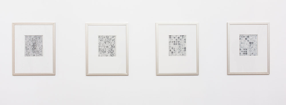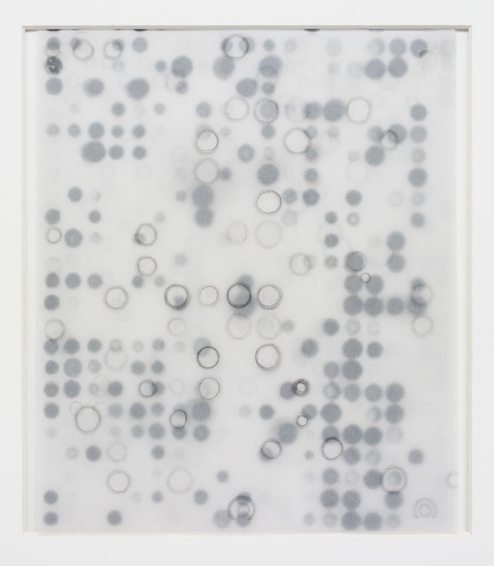 Also included in this exhibition are Ondrizek’s Gene Chip graphite drawings based on images taken from a DNA microarray. The works elegantly translate scientific data into soft, layered compositions that create a kind of molecular portrait. Although they look completely abstract, DNA microarrays communicate a wealth of knowledge about health and the human condition.