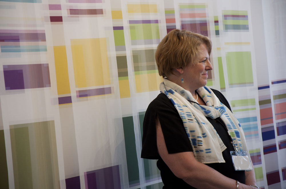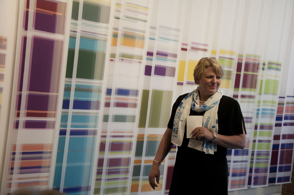 In 2009, artist Geraldine Ondrizek, Senior Genetic Counselor and Co-Director of UW Genetic Medicine Clinic, Robin Bennett, and I (Genevieve Tremblay), as a public scholar, collaborated to bring together art and medical science. This culminated in 2011 with a public art commission created by Ondrizek for the UW Medical Center to commemorate 50 years of Medical Genetics at the University of Washington. Geraldine Ondrizek is a research-based artist and Professor at Reed College. Her work ignites interest and inquiry about the influence of cancer and other diseases on both individuals and entire families. She relies heavily on scientific inquiry, focusing on documenting biological specimens and exploring systems of categorization. She works closely with genetic scientists to trace ethnic identities, portray life spans, and depict genetically inherited conditions. Robin Bennett, one of the most prominent genetic counselors in the nation, teaches human genetics at the UW Medical School. She pioneers genetic counseling practices that have become standard worldwide. As a public scholar, I integrate research, teaching, service, and public engagement in my curatorial practice. The three of us felt compelled to work together within our own disciplines to make genetic information more accessible, more visible, and better understood.
