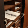 The third set of books has a funneling hole in the center with the chromosomal numbers letterpress printed at the bottom center like page numbers. This set begins with M168, the Bush people and ends with M3 in the center. These books trace the actual migration from 40,000 to 10,000 years ago. The fourth set of books are cut in the same circular form but are left blank. The books line the wall of the gallery space so that the viewer can look at each unique piece. Each book in a set is made with a different type of paper.