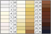 Felix von Luschan's Chromatic Scale (pictured above) was used to establish racial classifications of populations according to skin color. Named for its inventor, Felix von Luschan, the equipment consisted of thirty-six opaque glass tiles that were compared to the subject's skin, ideally in a place that would not be exposed to the sun regularly, such as the underarm. Source: Institut für Kulturgeschichte der Antike der Österreichischen Akademie der Wissenschaften Institut für Klassische Archäologie der Universität Wien.