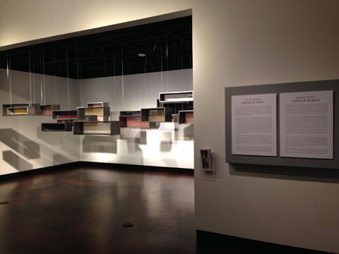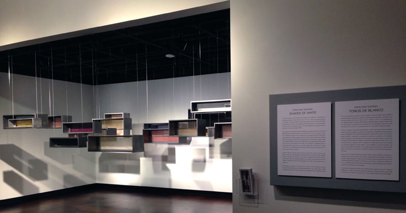 Shades of White, an installation created for the Artist Project Space at the Jordan Schnitzer Museum of Art, is the result of years of research. The work represents the “Gates Skin Color Chart,” a tool used by geneticists and anthropologists in the mid-20th century for racial classification. It is based on the research of Dr. Alexandra Minna Stern, a medical historian at the University of Michigan. Stern researches the history of eugenics and its attendant genetic and racial discrimination as practiced in the United States from 1900-87.