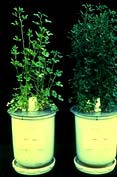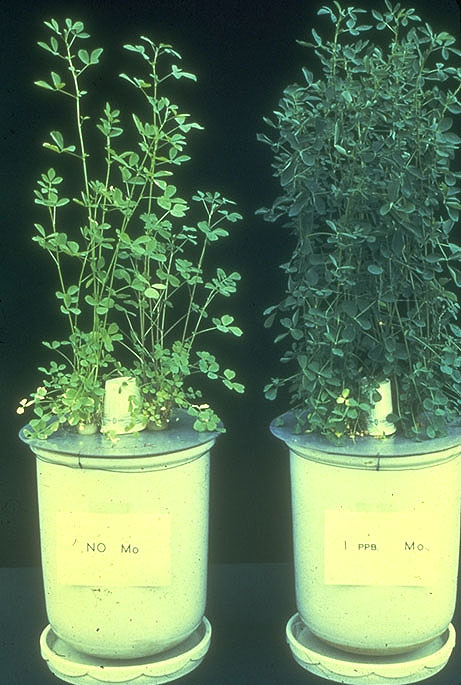 Figure 4. Alfalfa grown in the presence (right) or absence of molybdenum, an