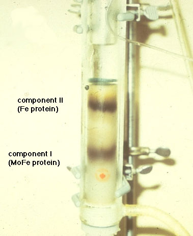the Fe protein (or dinitrogenase reductase, upper band) and the MoFe protein