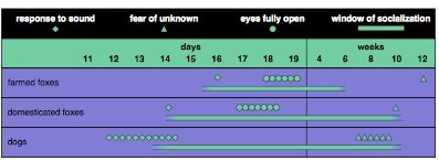 At an experimental farm in Novosibirsk, Siberia, geneticists have been working for four decades to turn foxes into dogs. They are not trying to create the next pet craze. Instead ,researchers hope to explain why domesticated animals such as pigs, cattle and dogs are so different from their wild ancestors. They have found that much has to do with a shift in developmental timing (figure below). Now they are keen to understand the genetic mechanisms that underlie those shifts and orchestrate the behaviors.