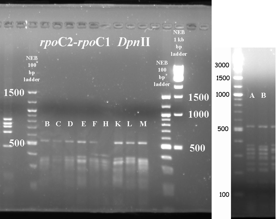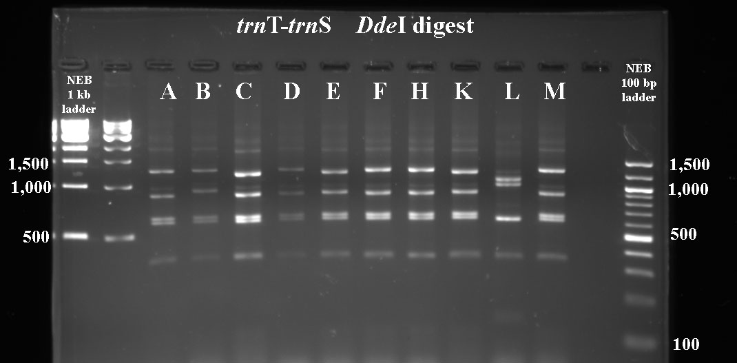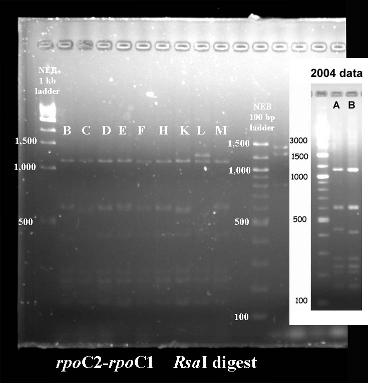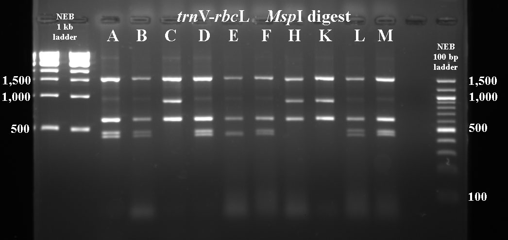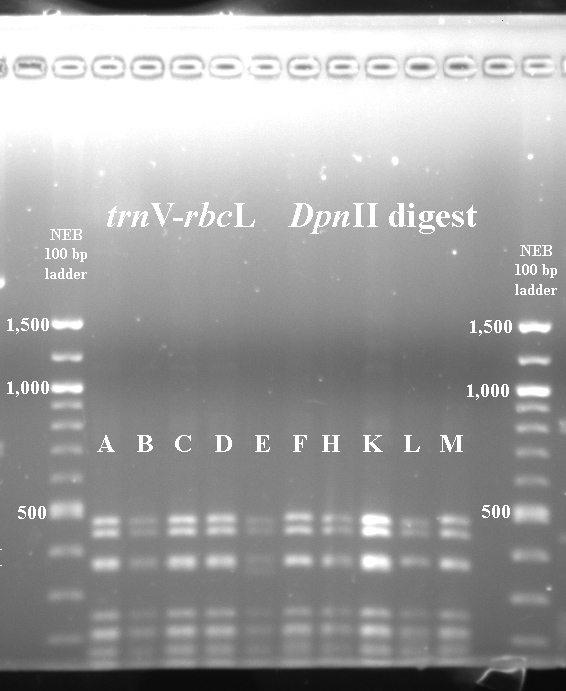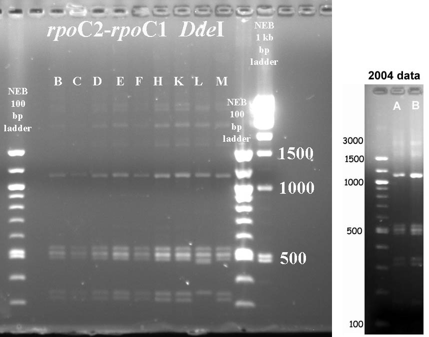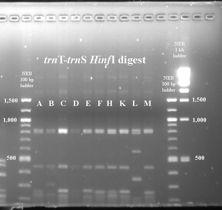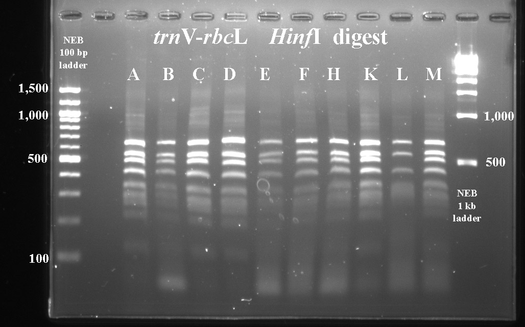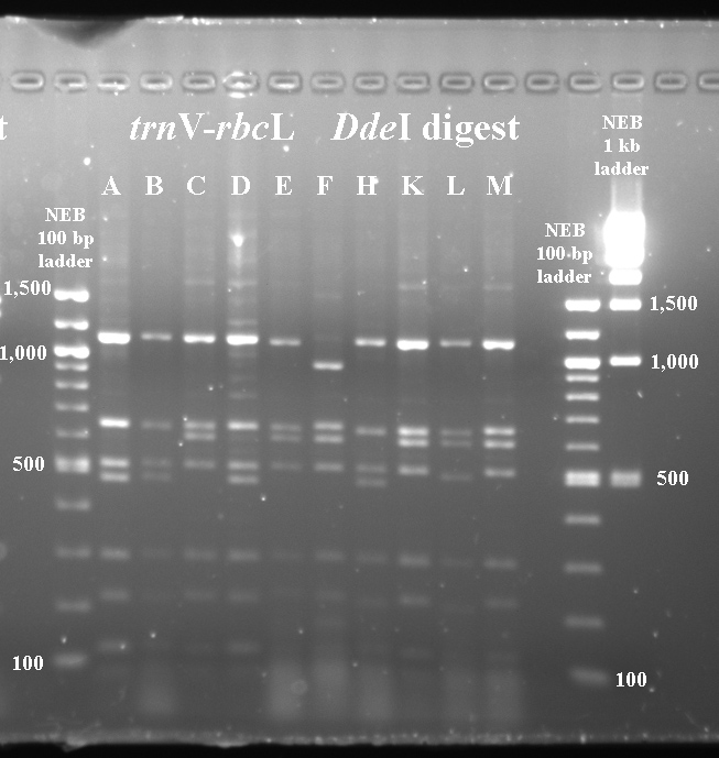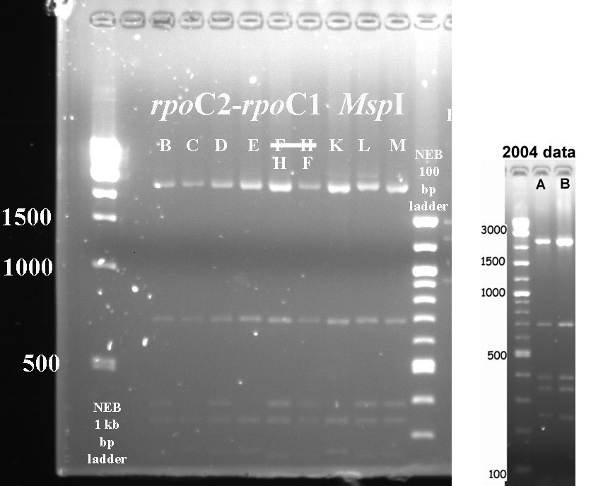 In cases where PCR products were not available for all taxa, I've included digest data fmor a previous year.