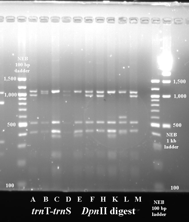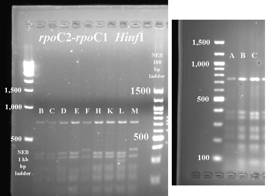 Clicking on any gel image will bring up a new browser window with a higher resolution image of the digest.