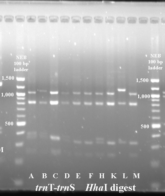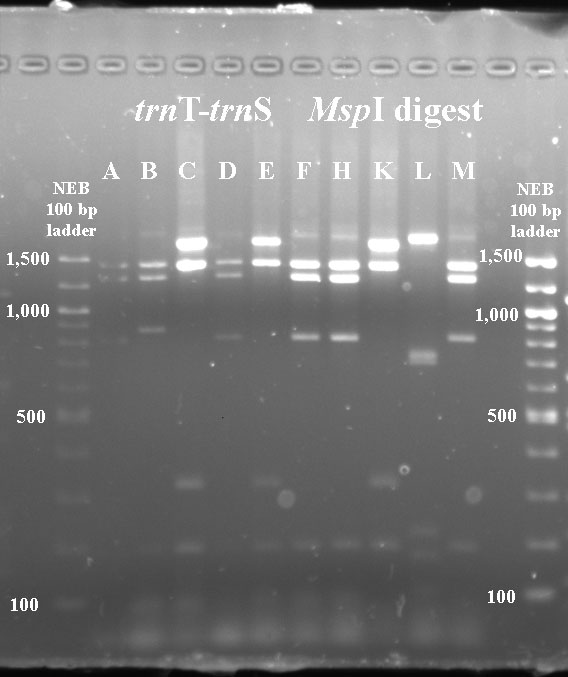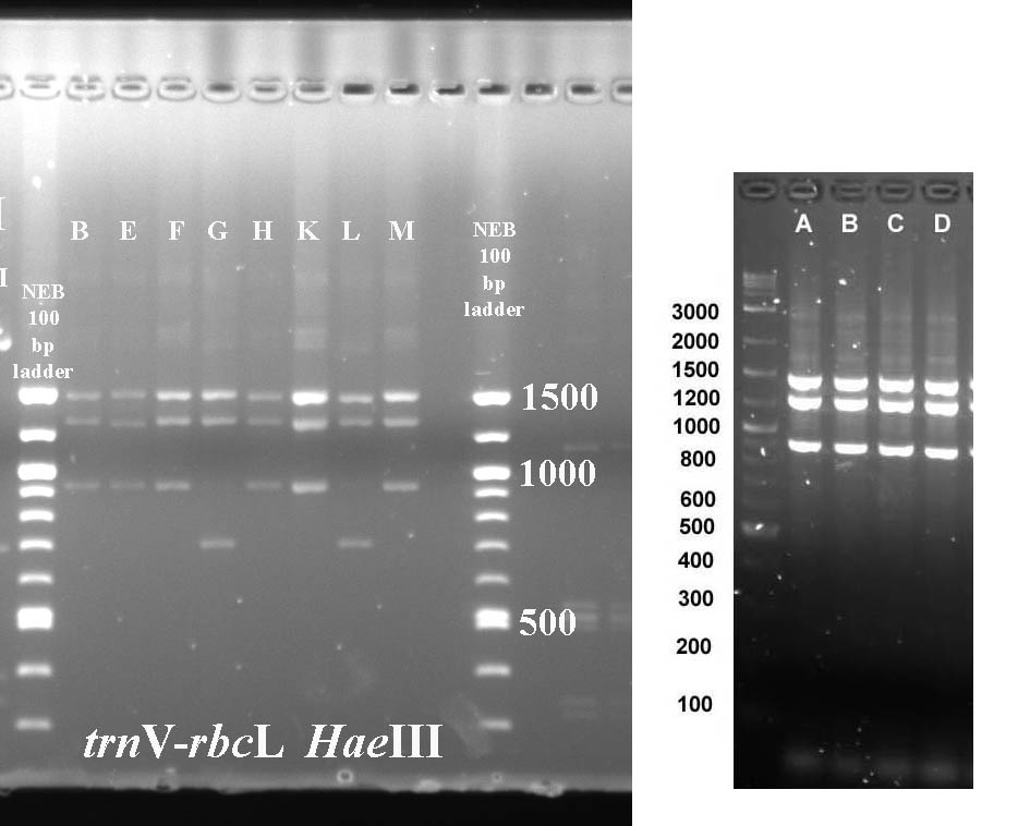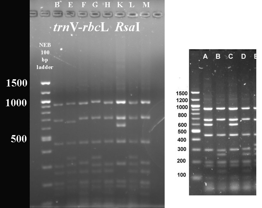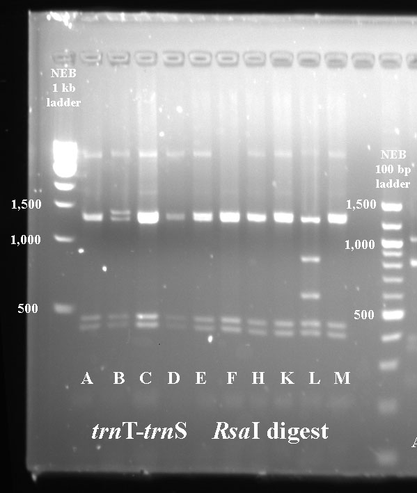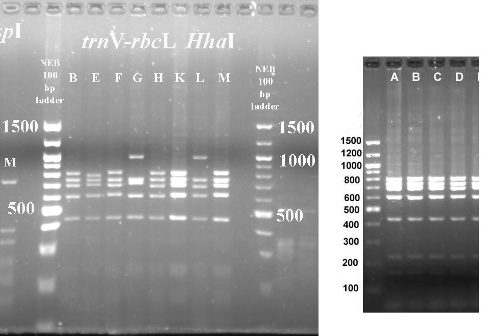 Mustard cpDNA -- PCR RFLP digests