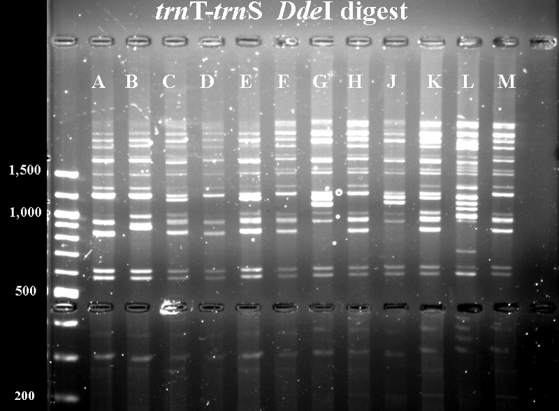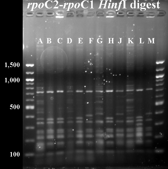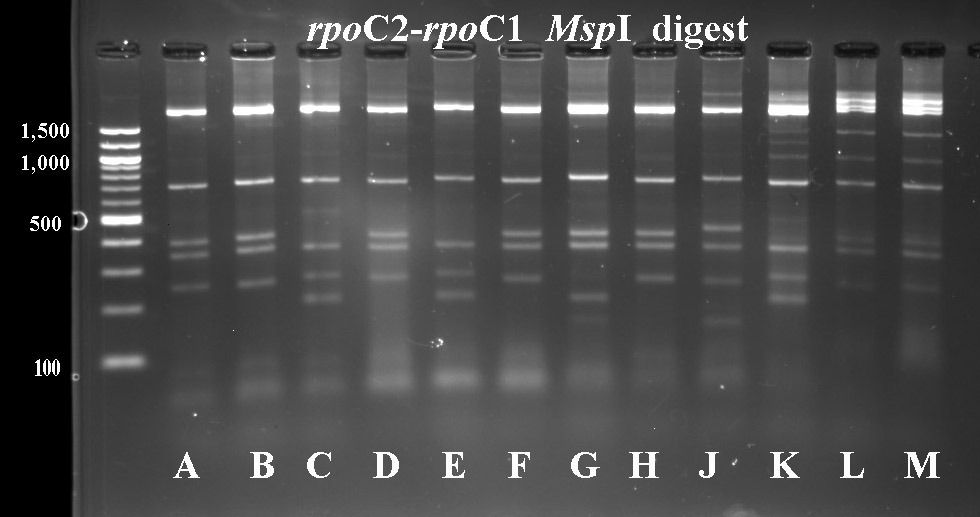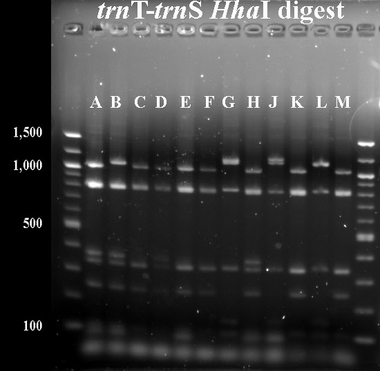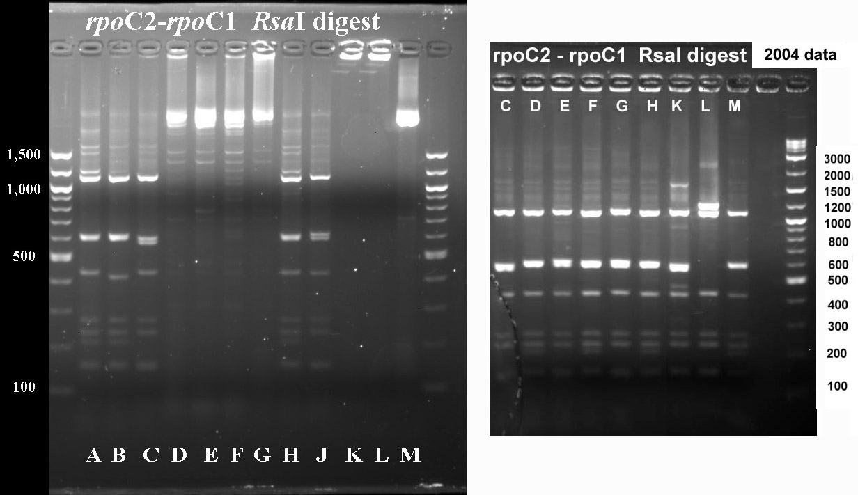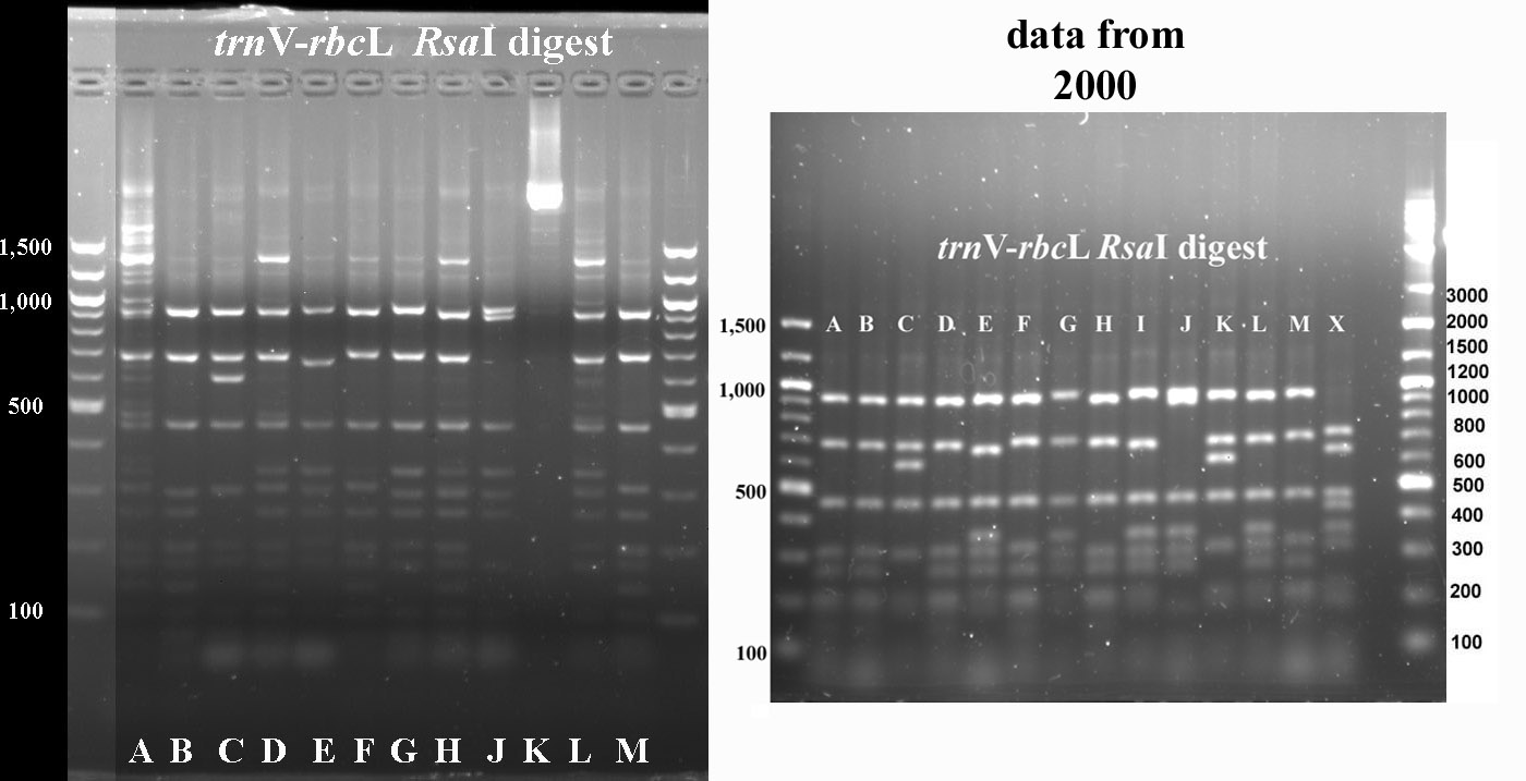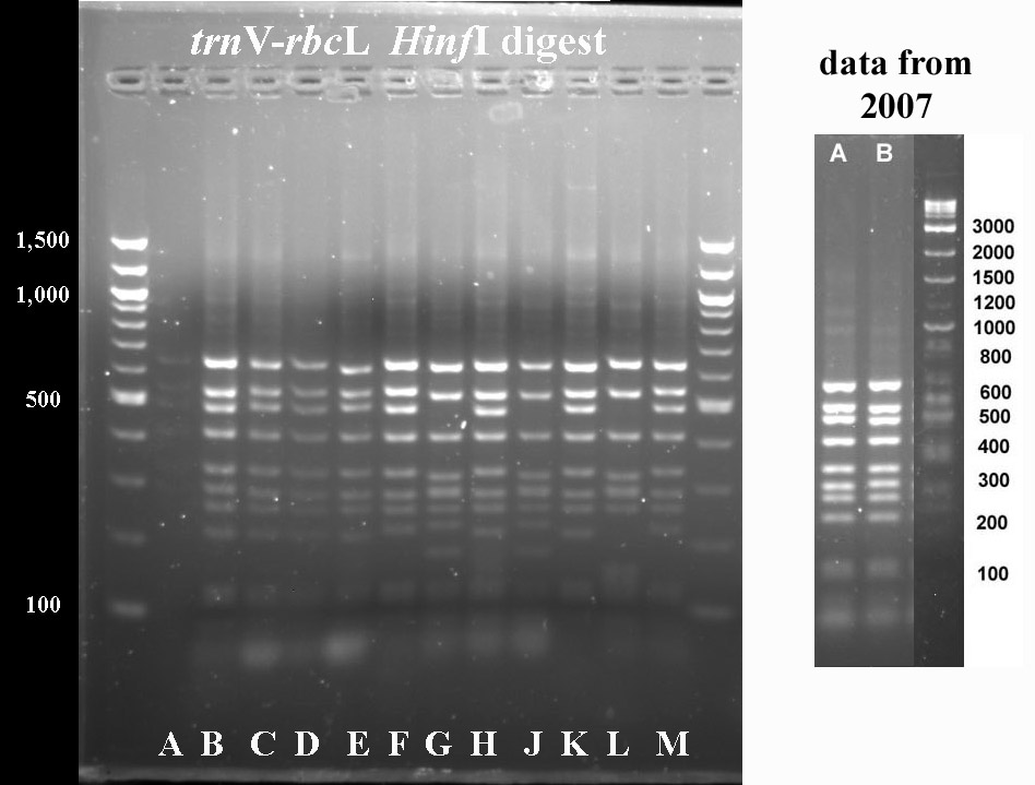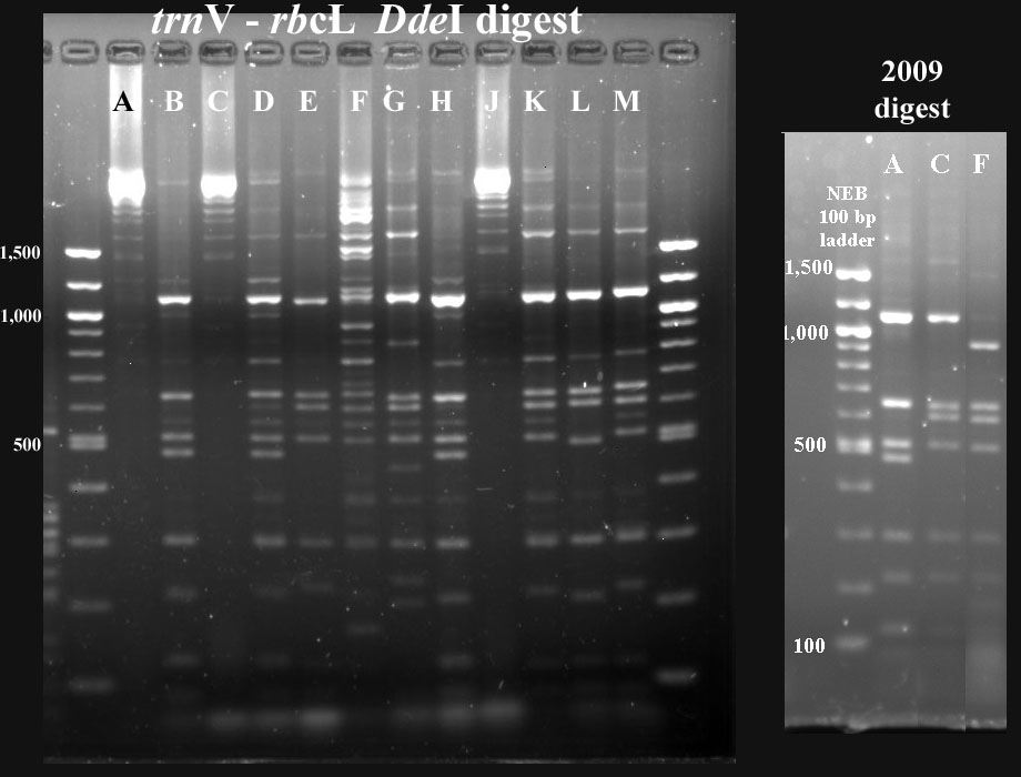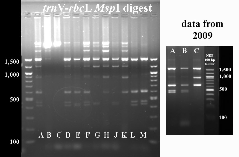 In cases where PCR products were not available for all taxa, I've included digest data fmor a previous year.