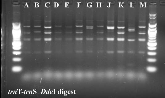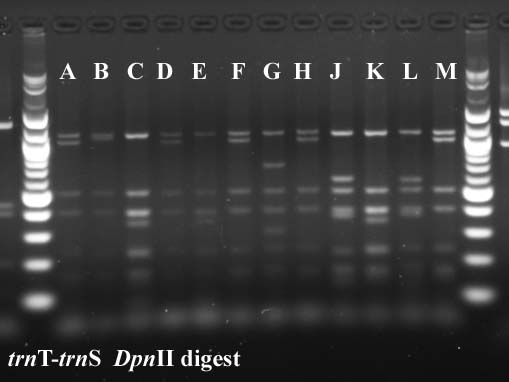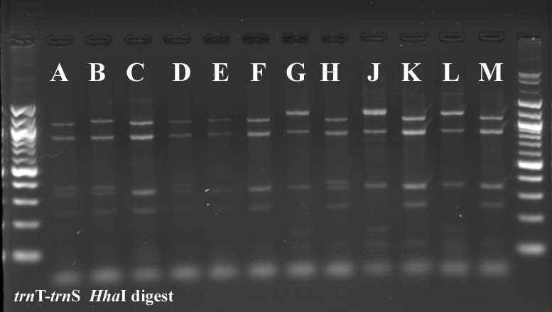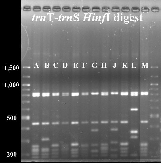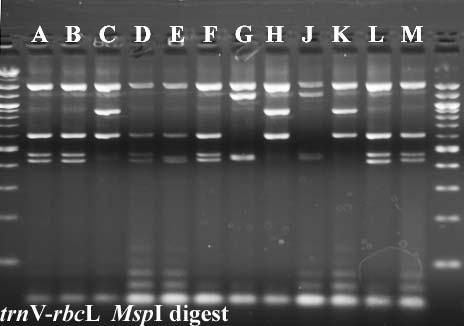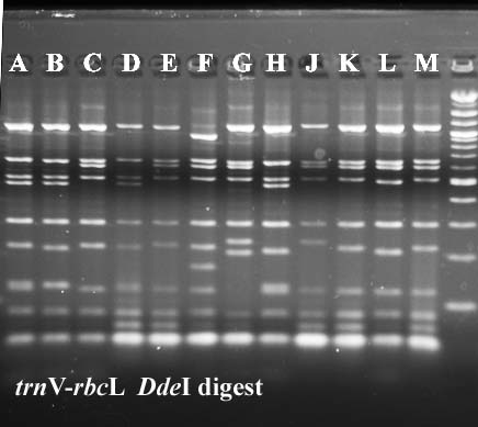 In cases where PCR products were not available for all taxa, I've included digest data from a previous year.