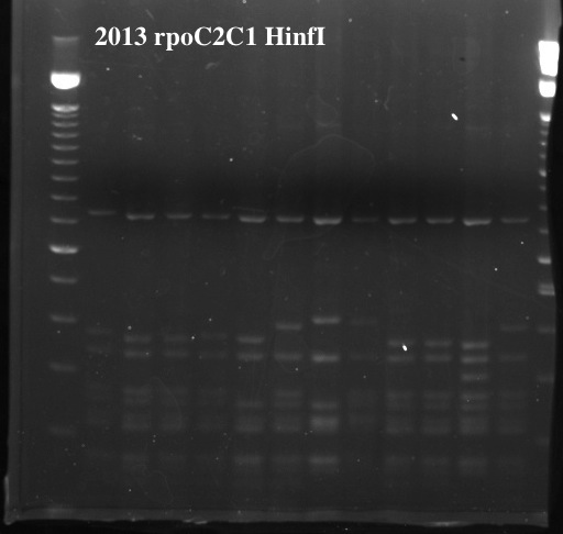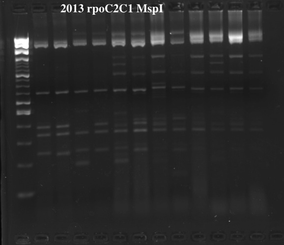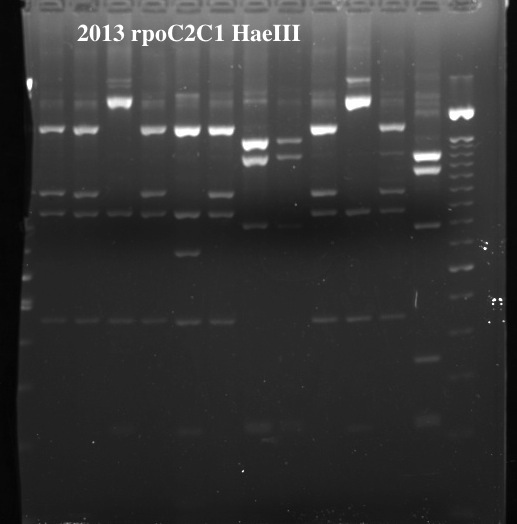 In cases where PCR products were not available for all taxa, I've included digest data from a previous year.