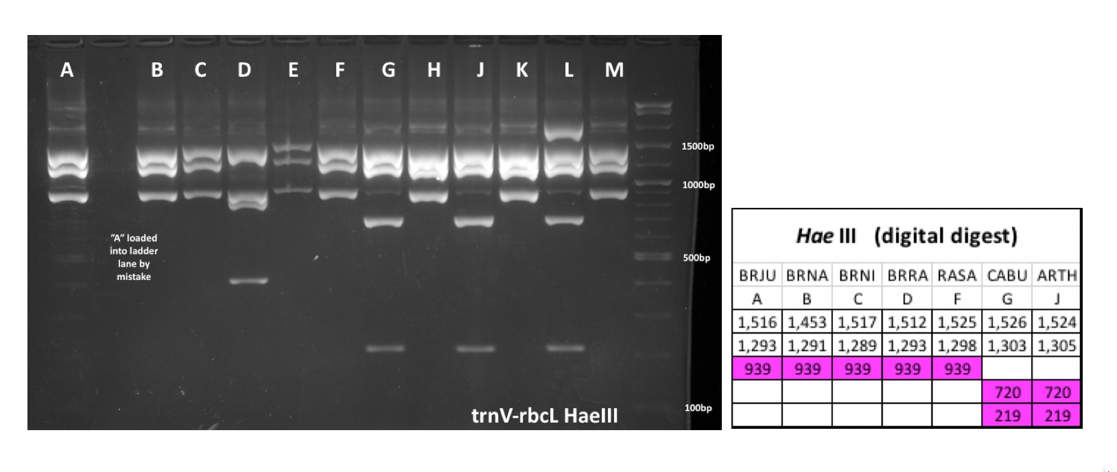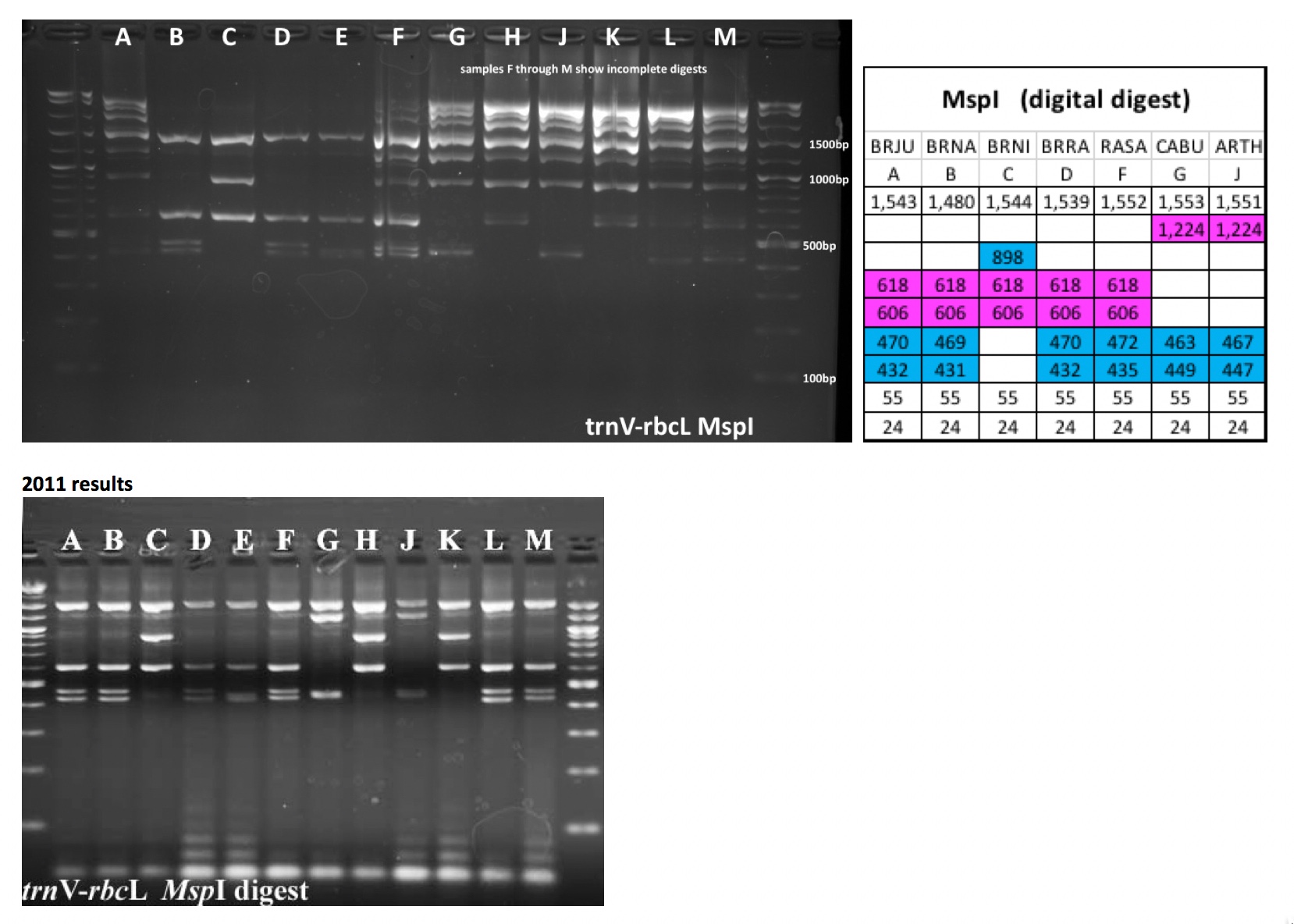 Mustard cpDNA -- 2021 Class PCR-RFLP digests