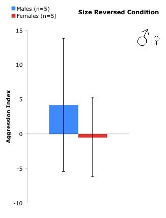 The results corroborated the idea that in situations when the female is larger, the female tends to be more aggressive and dominant; and in situations where the male is the larger of the two sexes, the male becomes more aggressive and hence dominates its mate.