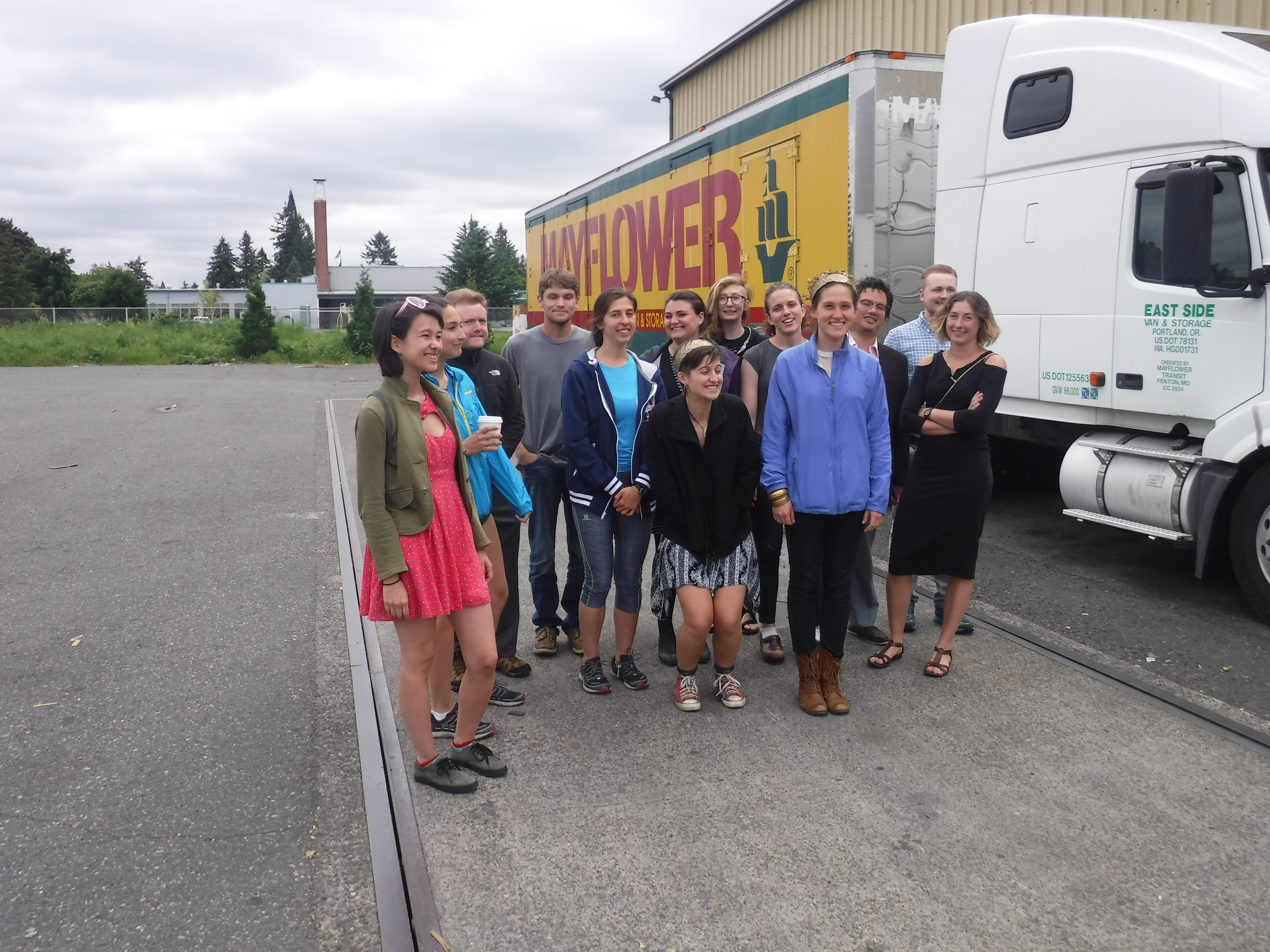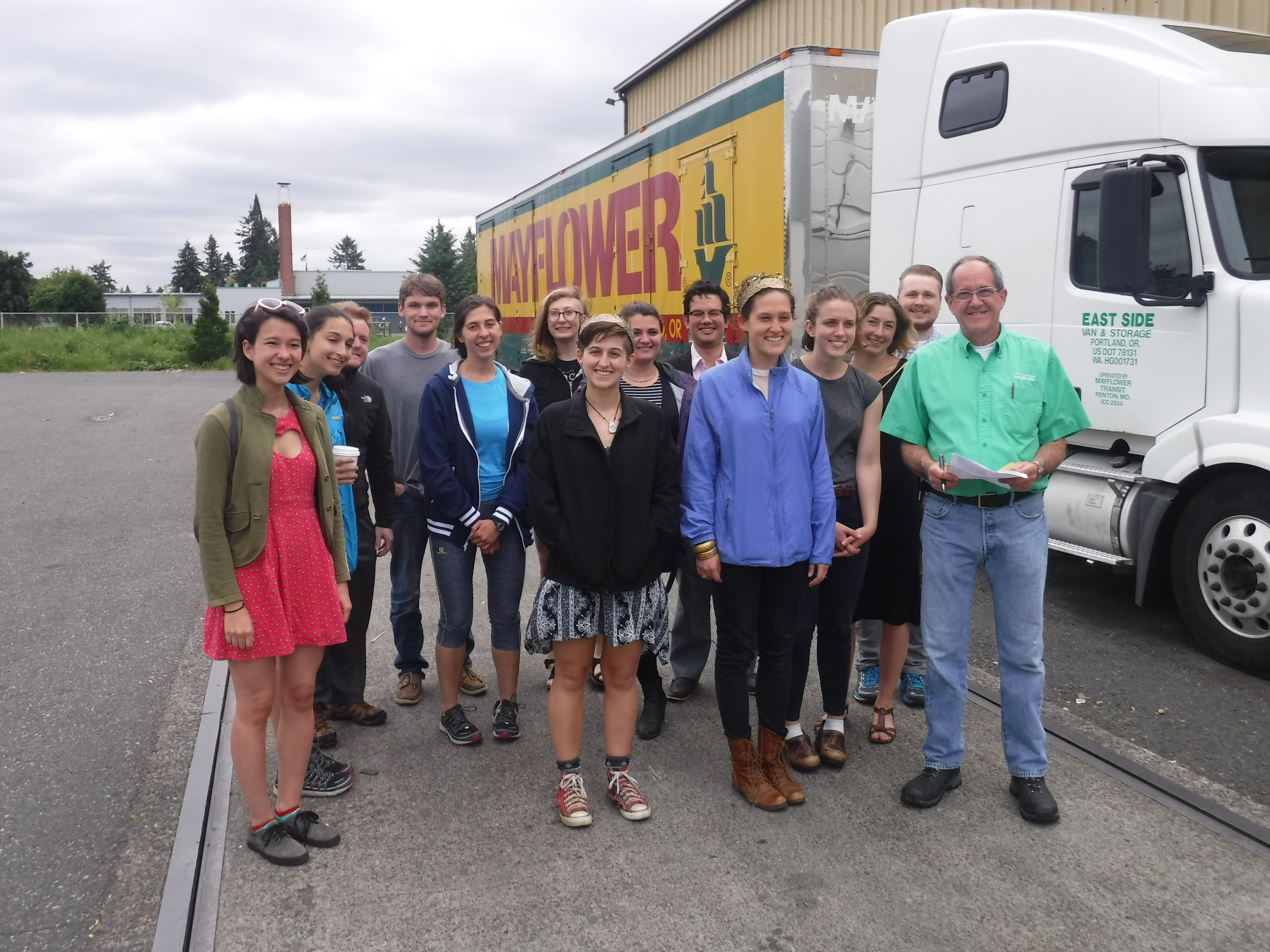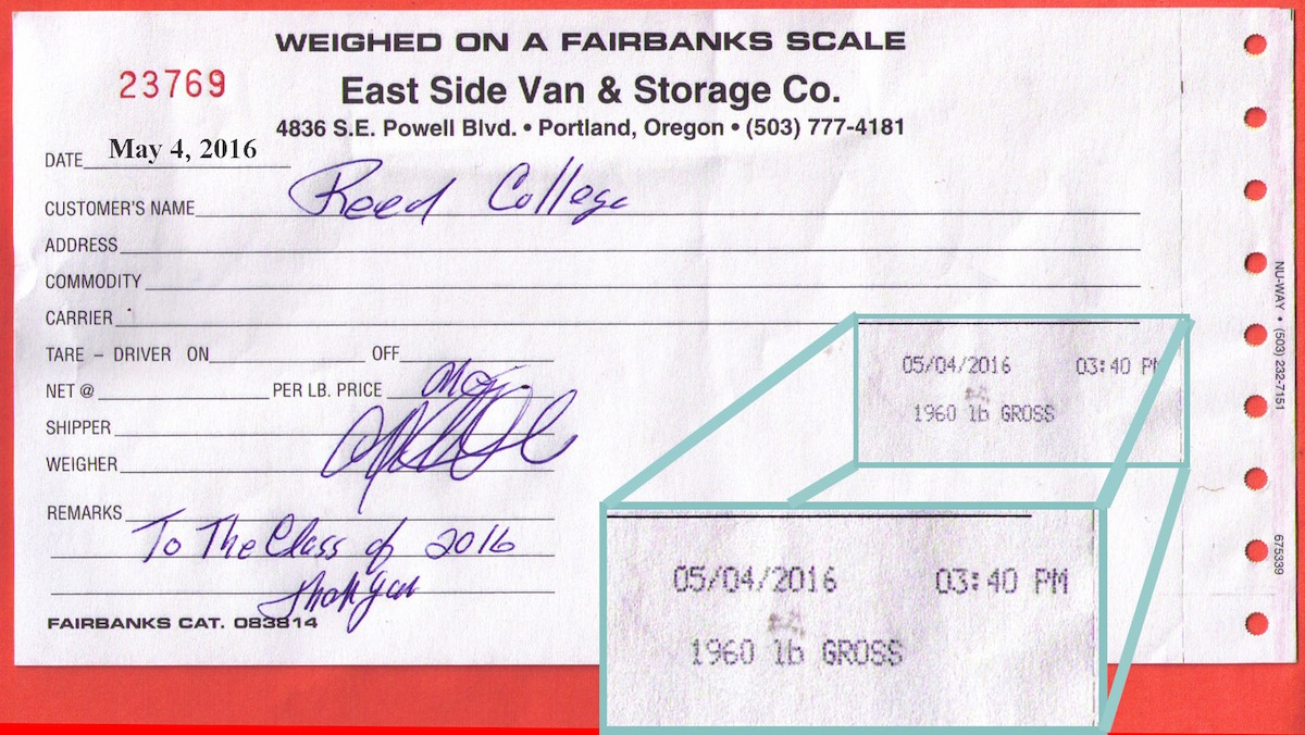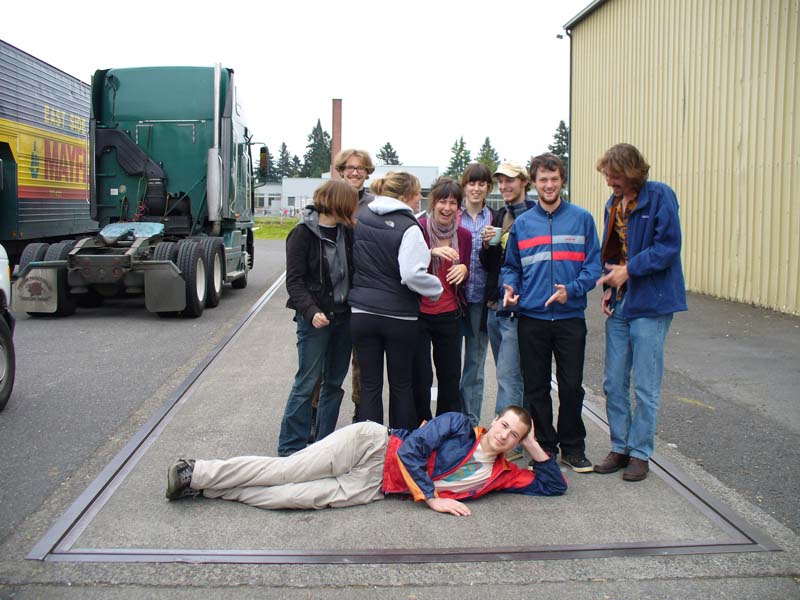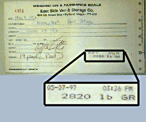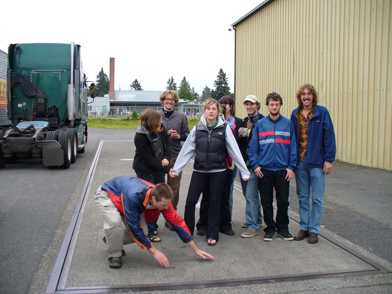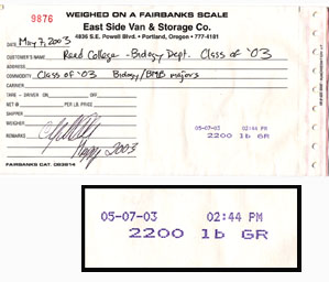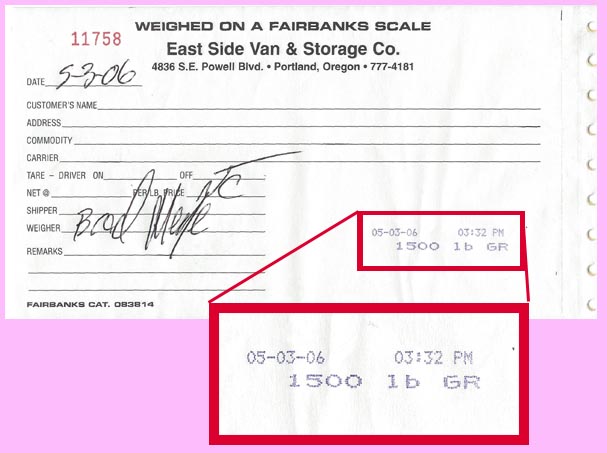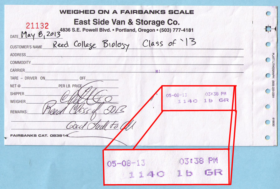 The seniors are transported en masse to a public scale. For the first 20 years, BIOMASS was determined on the Fairbanks Scale at the East Side Van & Storage Company (4836 SE Powell - a big THANKS! to Cliff and the folks at Eastside Van & Storage for their good humor and professional help with our data collection). In 2017, the BIOMASS determination was moved to Recology near SE Foster and 101st.