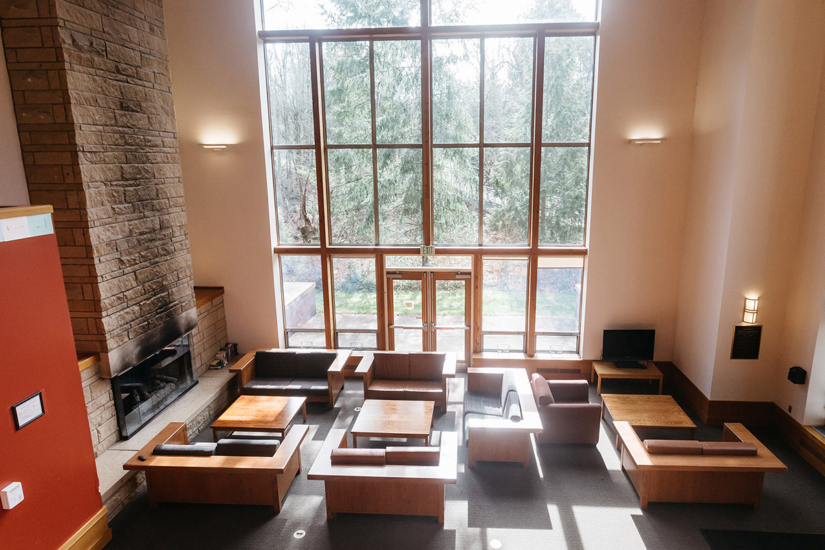 Named for former Reed president Paul Bragdon, Bragdon Hall is situated at the edge of the canyon and houses 62 students. Designed to resemble a modern ski cabin, Bragdon has three kitchens, lounges with large windows, a laundry room, a storage room, and an indoor bike storage area.
