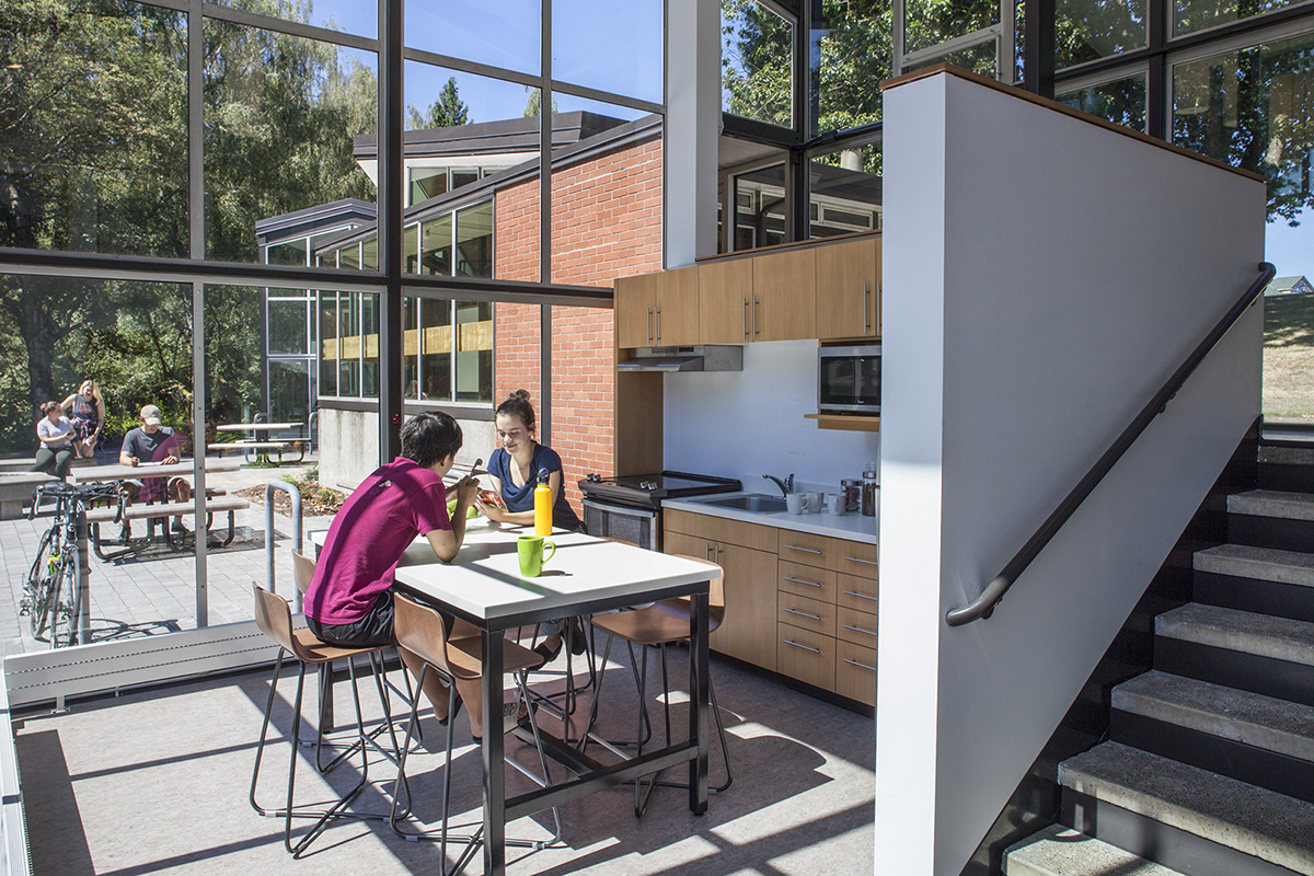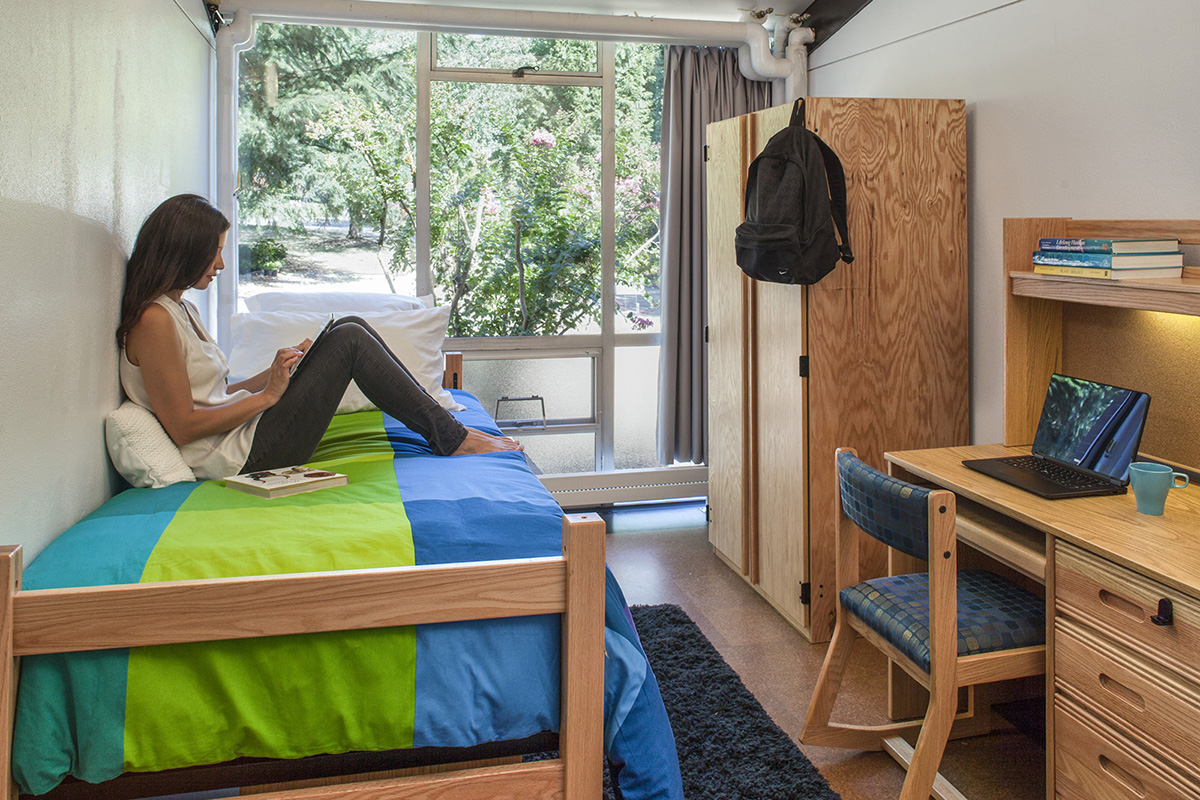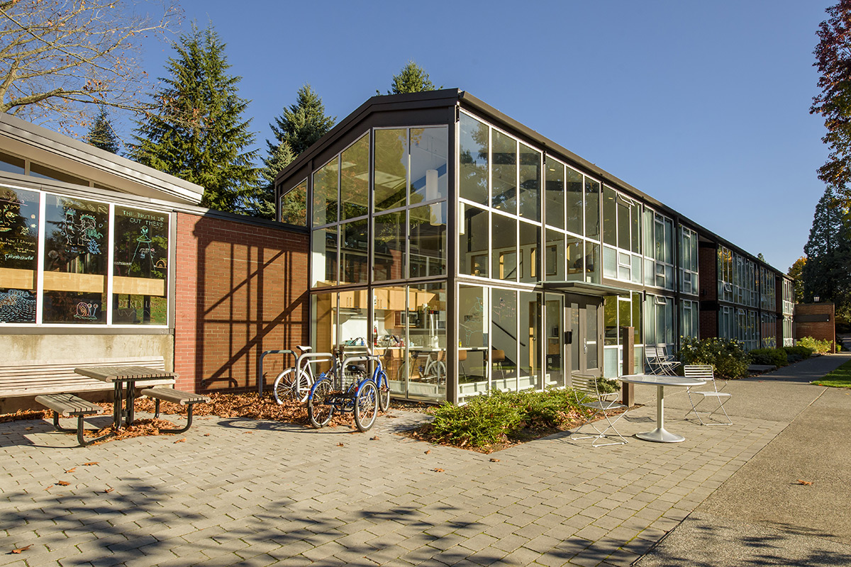 The cross-canyon residence halls are nestled in a grassy wooded area steps away from Reed’s 28-acre watershed canyon. Chittick, Griffin, McKinley, and Woodbridge house 104 students in singles, divided and undivided doubles, and divided and undivided triples. The small size and physical composition of the cross-canyon buildings foster a strong sense of community among the residents. Each hall has a full kitchen, laundry room, and spacious social room with a fireplace.